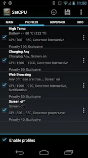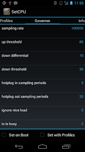 SetCPU adalah alat untuk mengubah pengaturan CPU pada ponsel Android berakar atau tablet . SetCPU bekerja dengan berbagai macam perangkat Android dan ROM , termasuk HTC One series , Samsung Galaxy seri , dan perangkat Nexus . Anda berada di bawah kontrol : SetCPU dapat meningkatkan kinerja Anda , menghemat baterai , atau keduanya !